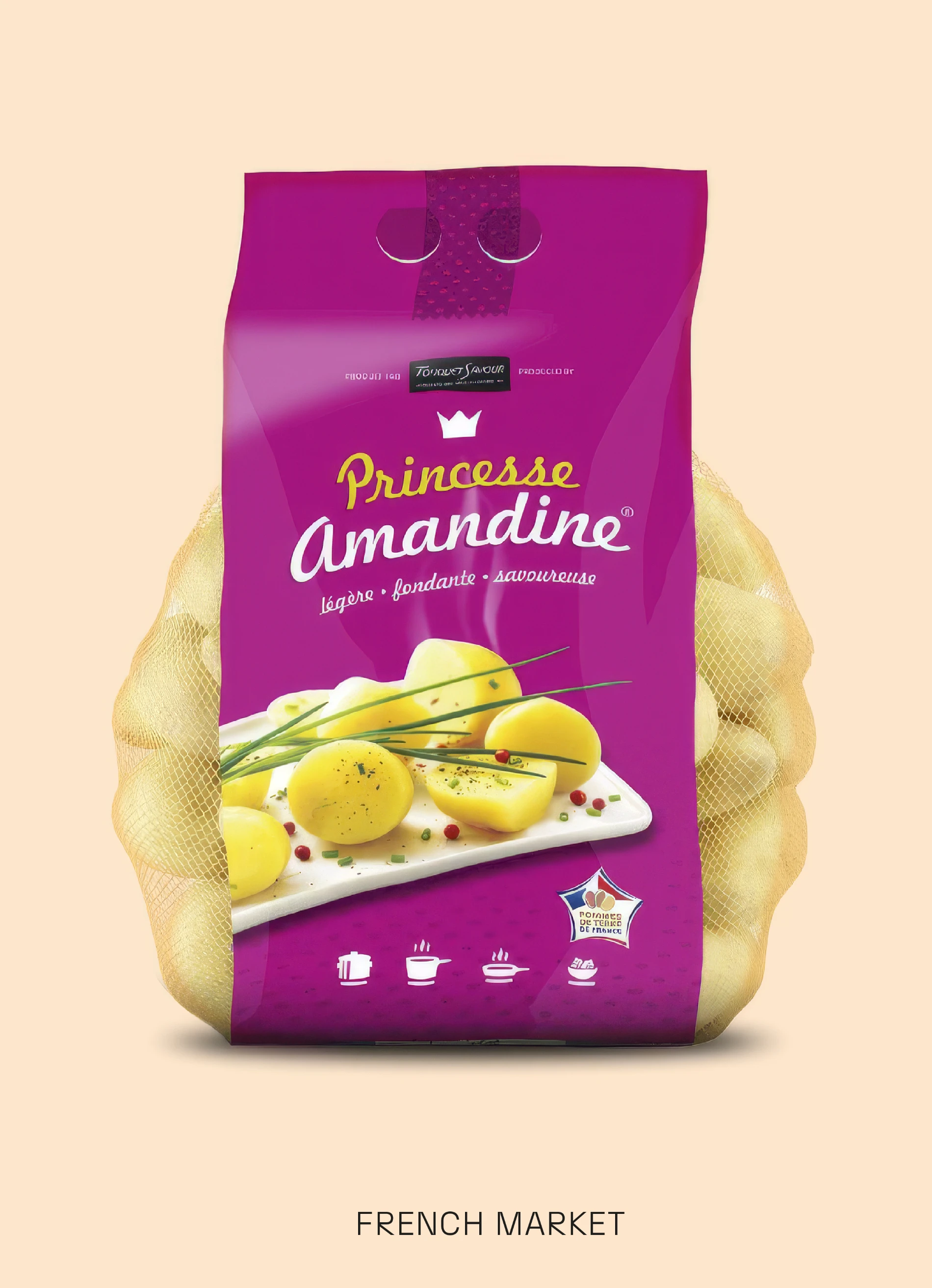 We created a packaging design that truly celebrates the potato: elegant and high-quality, with a rich, buttery flavor and a super-thin skin, positioning Princesse Amandine® as a highly attractive and convenient hero in its category.